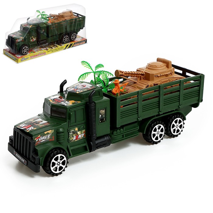 - Набор включает танк и солдатика: в комплекте есть не только грузовик, но и танк с миниатюрным солдатиком. Теперь можно придумывать свои собственные истории: перевозить технику, устраивать боевые миссии или даже создавать целые армейские базы.