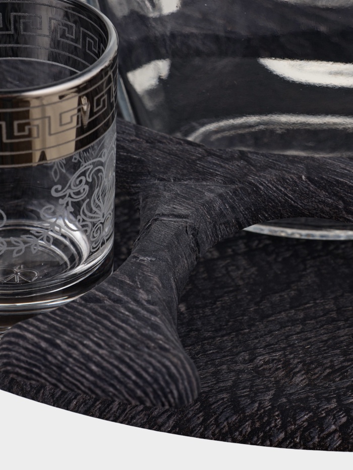 - Удобство использования: стопки компактно расположены вокруг графина.