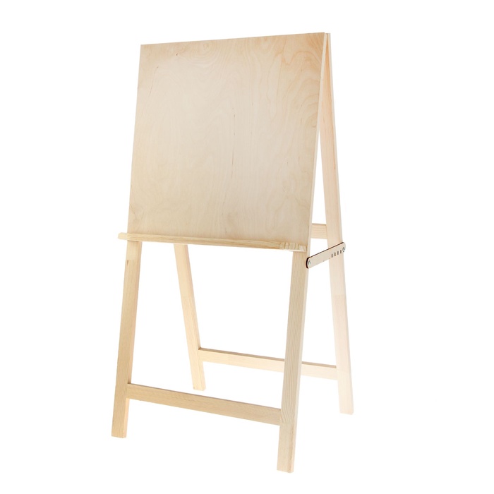 Напольный мольберт ""Хлопушка""- оптимальное соотношение функциональности и цены для начинающих художников и первого знакомства со знаковой живописью. Мольберт имеет простую конструкцию: пять положениий угла наклона рабочей поверхности, полка с бортиком для художественных материалов. Бумагу на планшете можно закрепить кнопками или малярным скотчем. Мольберт подходит для занятий в студии и дома, он складывается и не занимает много места при хранении. Изготовлен в России из неокрашенной доски и фанеры высшего сорта сибирской сосны. При таком тщательном отборе материалов вы можете быть уверены, что конструкция не деформируется со временем и не рассохнется. Все поверхности зашлифованы для безопасности и комфорта работы художника.