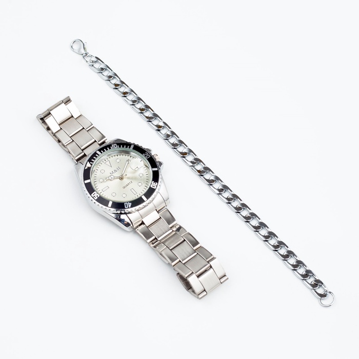УЦЕНКА Мужской подарочный набор «Этелберт» 2 в 1: наручные кварцевые часы, браслет, d=4 см