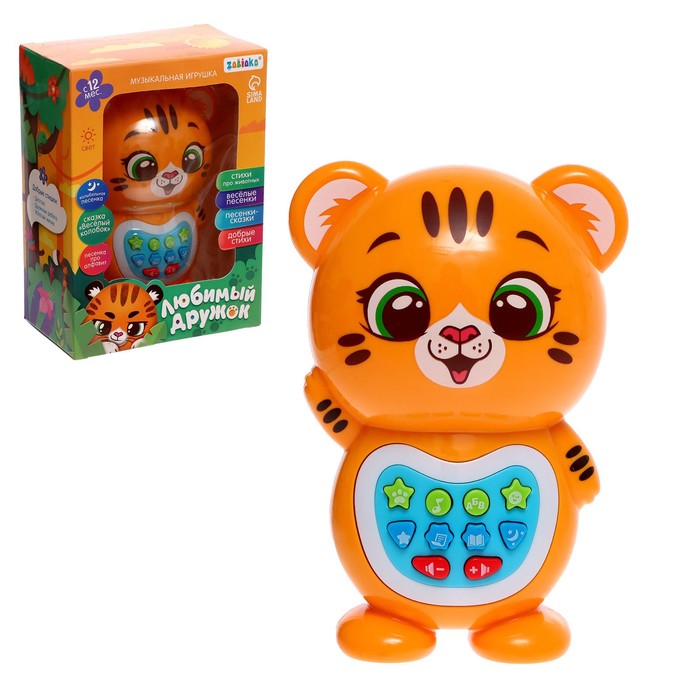Музыкальная игрушка «Любимый дружок: Тигрёнок» привлечёт внимание трогательным дизайном и надолго займёт малыша благодаря множеству полезных функций. Игрушка не только развлечёт ребёнка — с ней можно осваивать новые навыки!