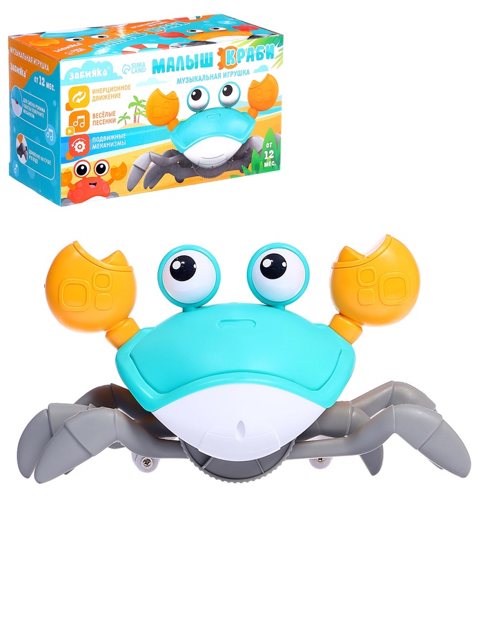 Игрушка «Малыш Краби» станет отличным выбором для активных и любознательных малышей. Эта яркая музыкальная игрушка в форме краба голубого цвета развлекает детей с самого раннего возраста и стимулирует их развитие. Благодаря инерционному механизму, краб двигается по суше самостоятельно, превращая игру в увлекательное приключение.