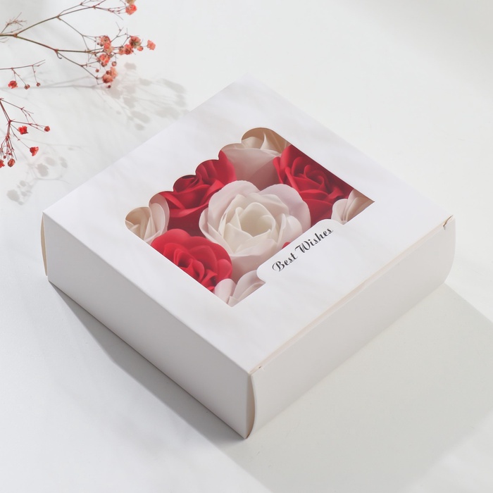 УЦЕНКА Мыльные лепестки для ванны «Красные и белые розы», подарочный набор 9 шт., 4.5×12.6×12.6 см