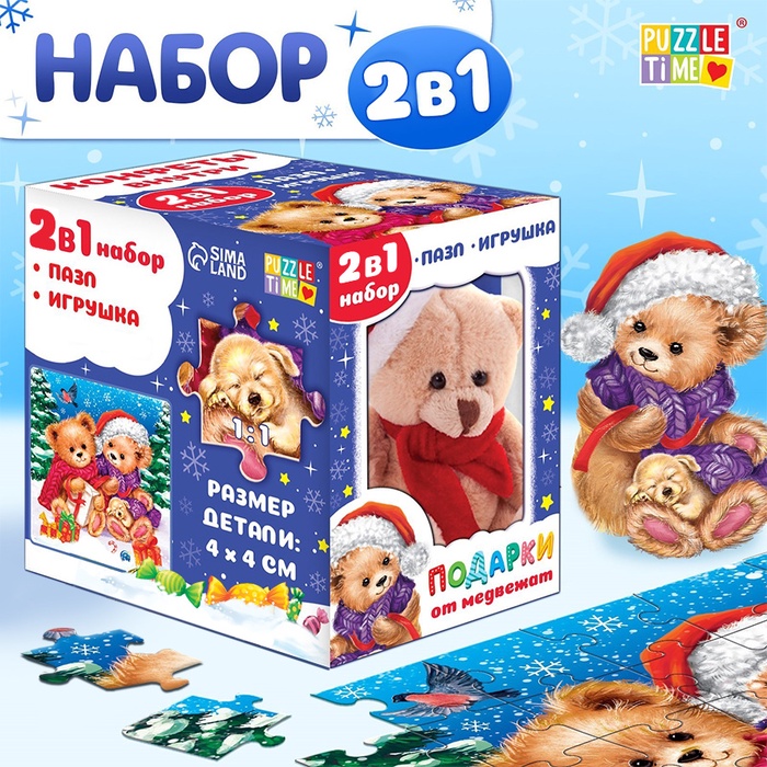 УЦЕНКА Набор 2 в 1 «Подарки от медвежат»: пазл + игрушка