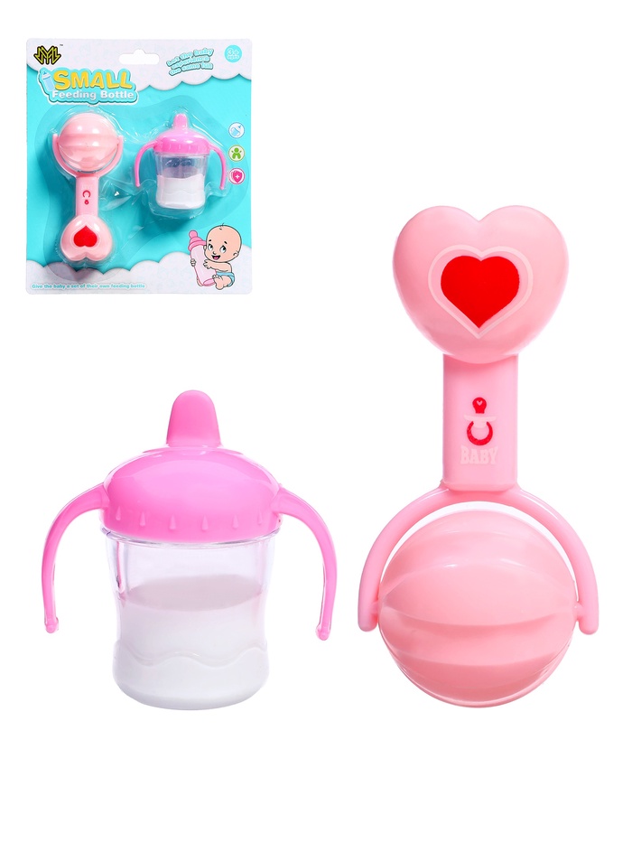 УЦЕНКА Набор аксессуаров для пупса, 2 предмета: бутылочка, погремушка, МИКС