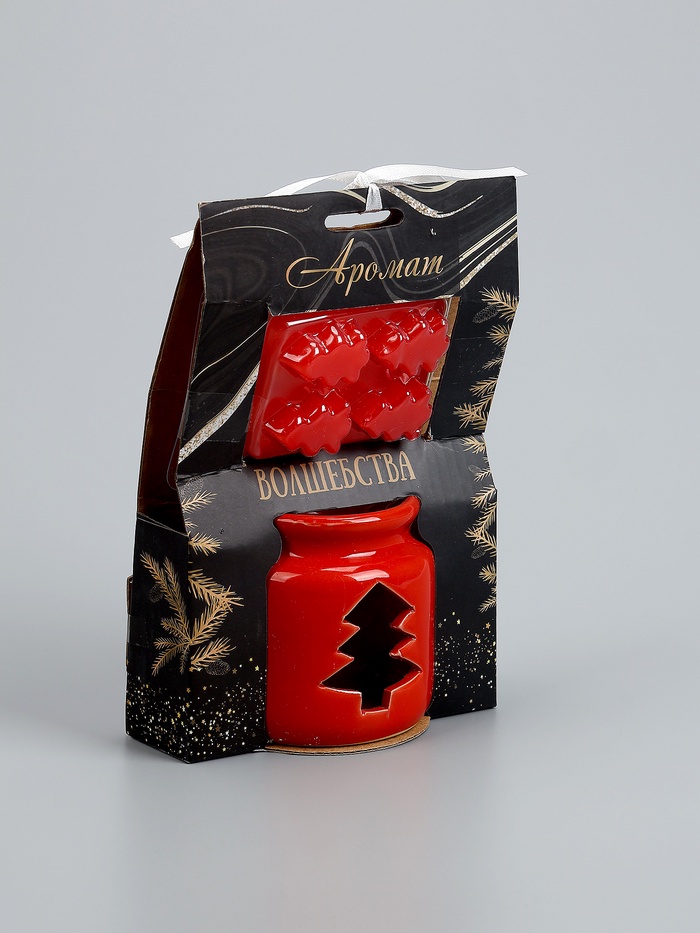 УЦЕНКА Набор: Аромалампа для эфирных масел, мелтсы из воска ароматические «Ёлочка», красная, 7.5×7.5×8 см