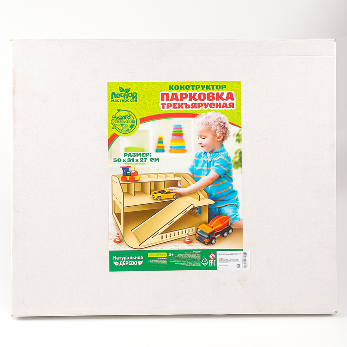 Деревянная парковка — это превосходный подарок для любителей машинок. Развивающий конструктор изготовлен из дерева, за счёт чего имеет повышенную прочность.