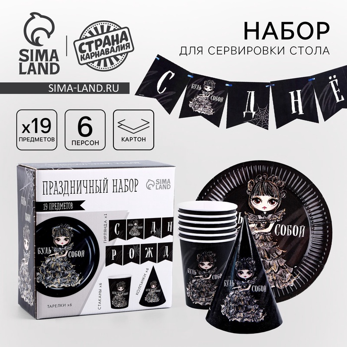 УЦЕНКА Набор бумажной посуды «С Днём Рождения»: 6 тарелок, 6 стаканов, 6 колпаков, 1 гирлянда