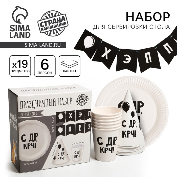 УЦЕНКА Набор бумажной посуды «С ДР», 6 тарелок, 6 стаканов, 6 колпаков, 1 гирлянда