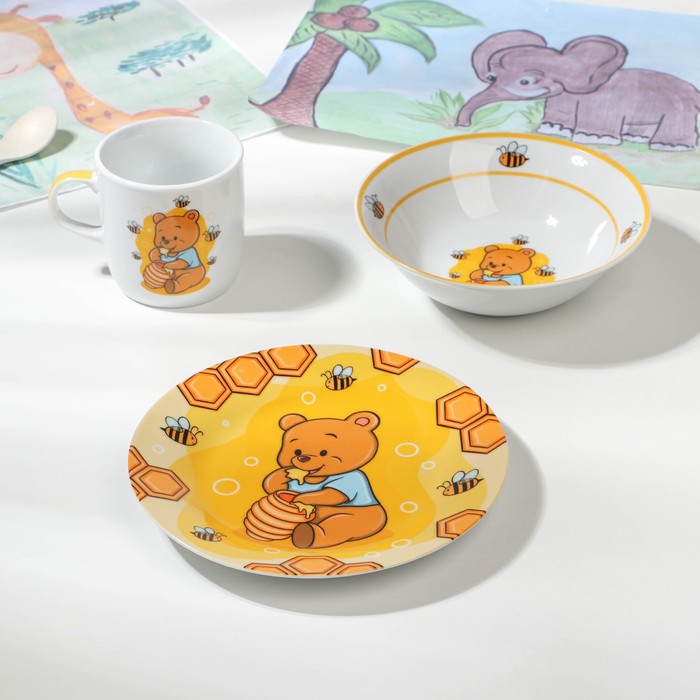 УЦЕНКА Набор детской посуды 3 предмета "Медвежонок и мёд" кружка 230 мл, миска 400 мл, тарелка