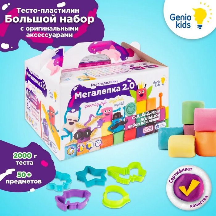 В наборе «Мегалепка 2.0» целых 2 кг пластилина! В нём 40 брусков теста различных цветов и большое количество инструментов, с которыми легко разнообразить игру.