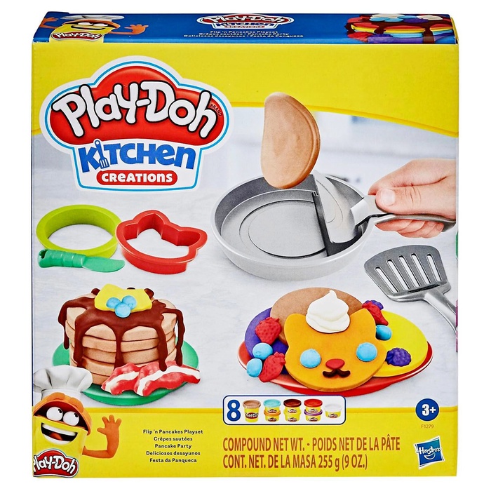 В процессе игры пластилин раскатывается, формуется и комбинируется с аксессуарами. Сковорода с механизмом переворачивания позволяет «подбрасывать» блинчики, как на настоящей кухне. Формочки и инструменты помогают создавать разнообразные варианты блюд — от классических блинов до фантазийных десертов.