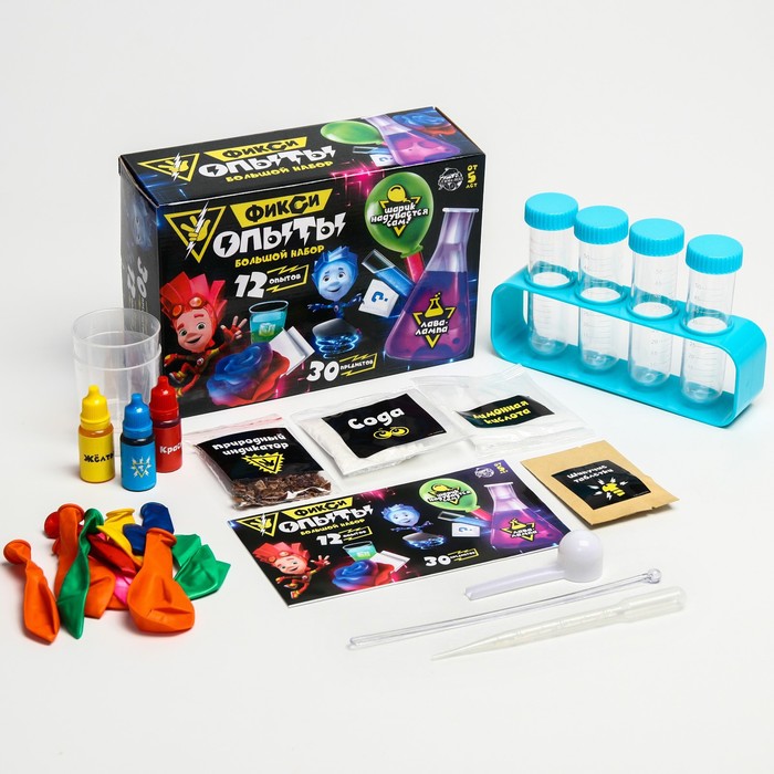 Набор «Фикси опыты. Большой набор» станет отличным выбором для увлекательных занятий дома. Юные исследователи смогут провести 12 интересных экспериментов вместе с героями любимого мультфильма — Файером и Ноликом. Этот набор подходит детям от 5 лет, помогая развивать любознательность и исследовательские навыки в игровой форме.