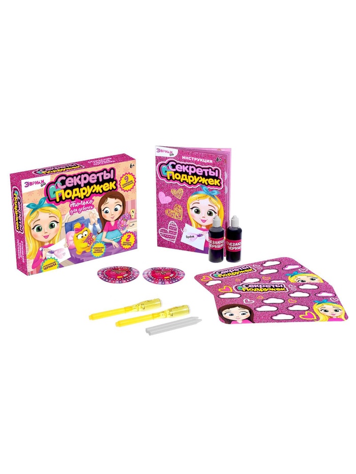 С набором «Секреты подружек» отправить тайное послание теперь проще простого. Благодаря увлекательному опыту малышка составит зашифрованный текст, а её подруга легко превратит его в нормальный. А ещё можно записать секреты с помощью карточек с окошками, использовать невидимые чернила и даже восковый карандаш.