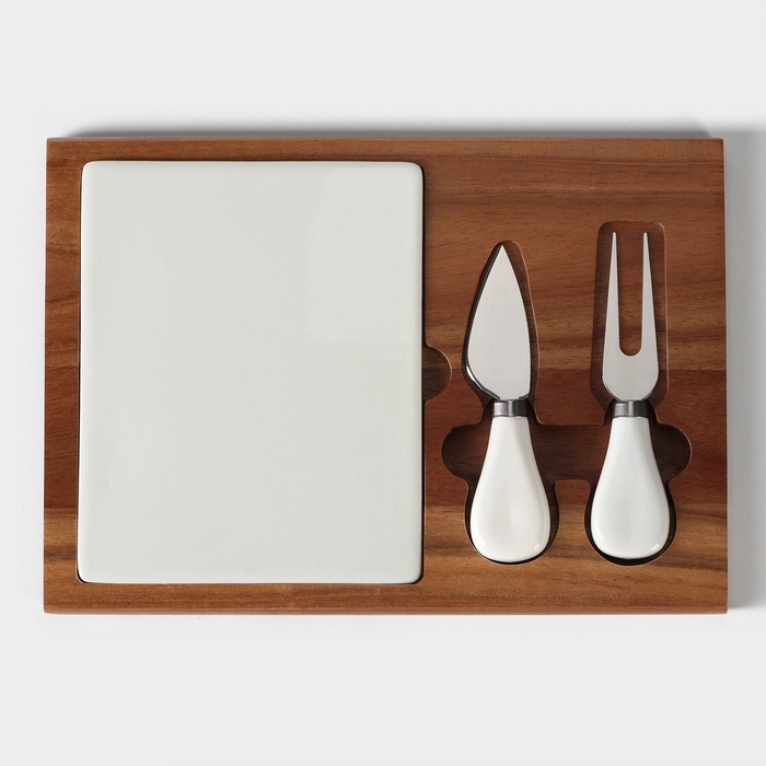 УЦЕНКА Набор для подачи сыра «Мрамор», 2 ножа, акация