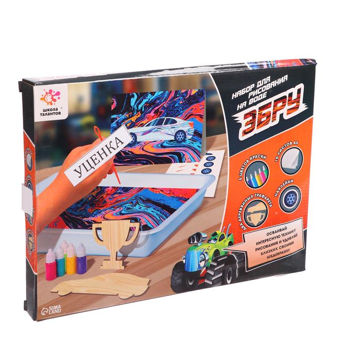 УЦЕНКА Набор для рисования на воде в технике эбру «Машинки» (помята упаковка)
