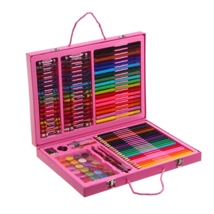 УЦЕНКА Набор для рисования в розовой коробке 122 предмета (фломастеры засохли, плохо пишут)