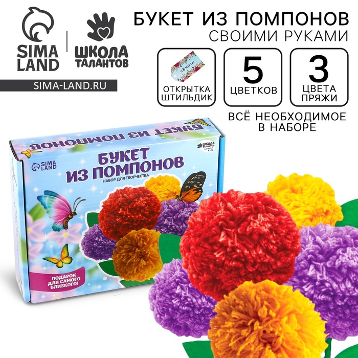Поделка к празднику — отличный повод провести время с ребёнком и создать замечательную поделку. Детям нравится мастерить из самых невероятных материалов. Оригинальный набор для создания букета из помпонов по-настоящему увлечёт ребёнка и станет удачным подарком для талантливого малыша!