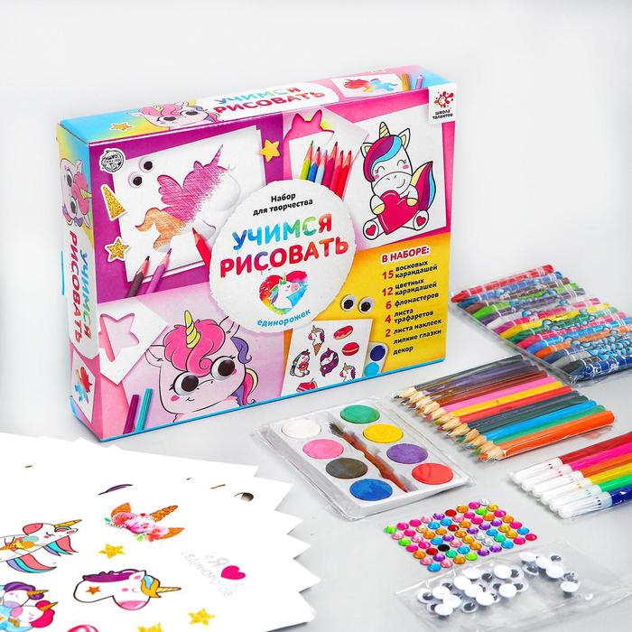 Набор для рисования «Учимся рисовать: единорожки» — это все, что нужно для создания ярких и запоминающихся картин. С помощью удобных трафаретов даже самый маленький художник сможет легко нарисовать любимых животных, а разнообразие материалов позволит добавить рисунку индивидуальности и превратить процесс творчества в увлекательное приключение.