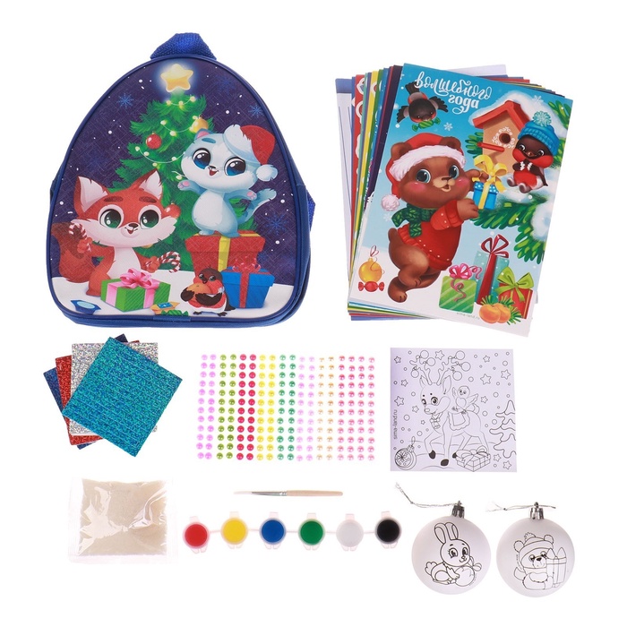 Внутри новогоднего рюкзачка находится целых 25 предметов для творчества.