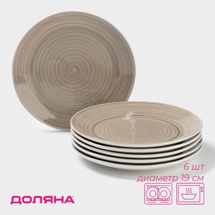 УЦЕНКА Набор фарфоровых тарелок Доляна «Палитра», d=19 см, 6 шт., серая
