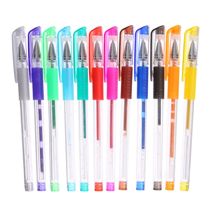 УЦЕНКА Набор гелевых ручек 12 штук, с резиновым держателем (причина: плохо пишет стержень/не все пишут)