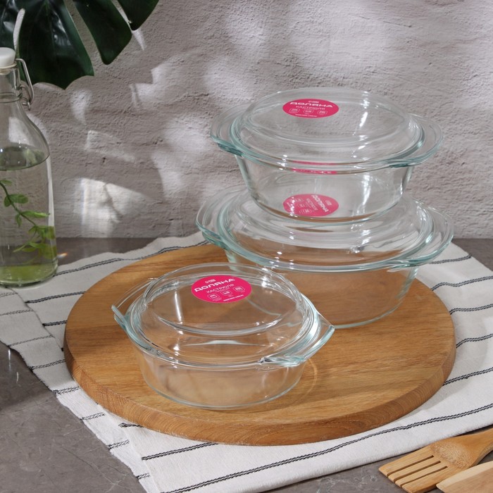 УЦЕНКА Набор кастрюль из жаропрочного стекла для запекания Доляна «Гратен», 2 предмета с крышками