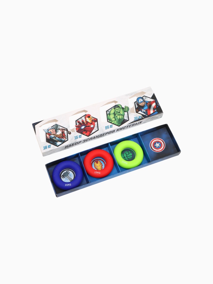 УЦЕНКА Набор кистевых эспандеров "Мстители" нагрузка 10,15,25,35 кг