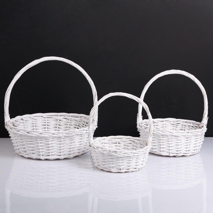 УЦЕНКА Набор корзин, 3 шт., 39×14/40 см, 30×12/35 см, 25×10/30 см, белый, ива