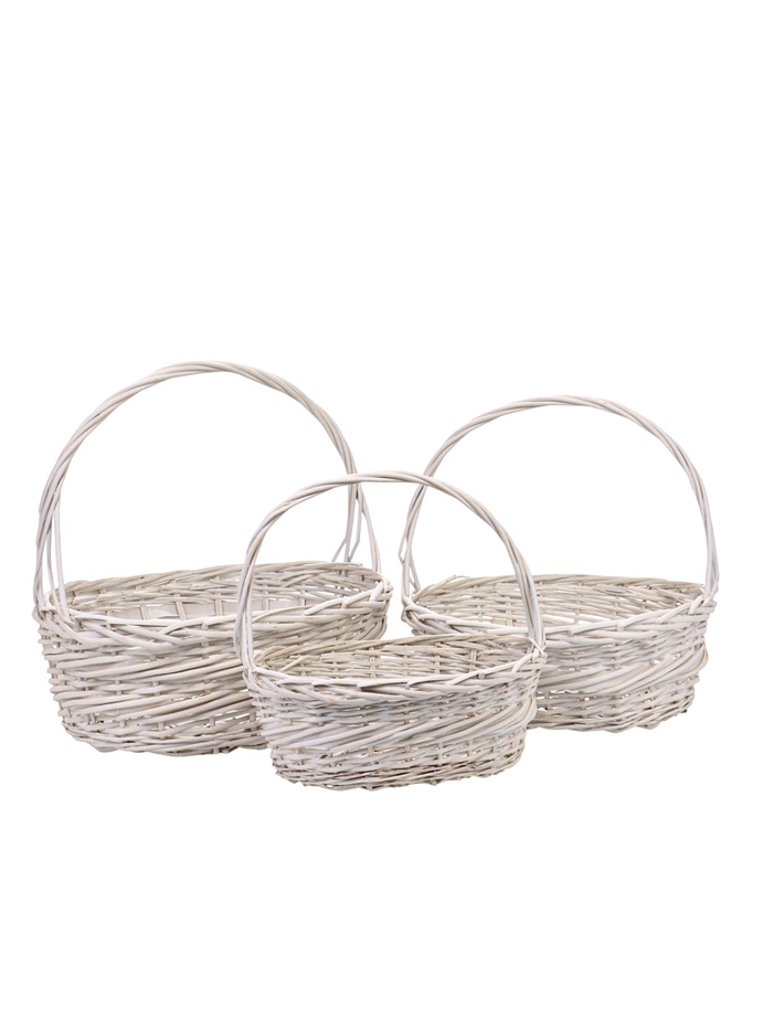 Представляем набор из трёх плетёных корзин, которые станут идеальным решением для хранения и декора в вашем доме. Каждая корзина выполнена из натуральной ивы белого цвета, что делает их универсальным выбором для любого интерьера — от классического до современного. Овальная форма и удобные ручки добавляют практичности, а разные размеры позволяют использовать их для различных целей.