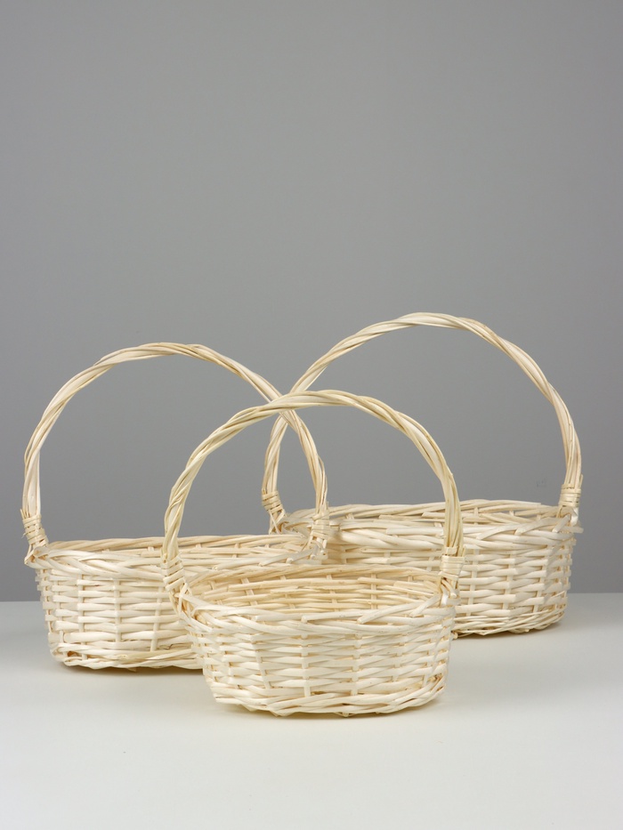 Плетёные корзины светлого оттенка из ивы станут замечательным дополнением к интерьеру или практичным решением для хранения. Эти три надежных и стильных ёмкости с овальной формой отличаются универсальностью и привлекательным дизайном.