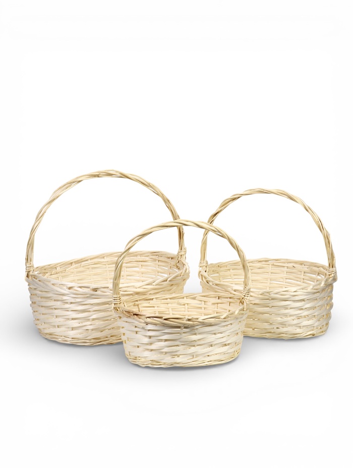 УЦЕНКА Набор корзин плетеных, 47×39×17/43, 40×32×15/38, 33×25×13/33 см, 3 шт., белый, ива