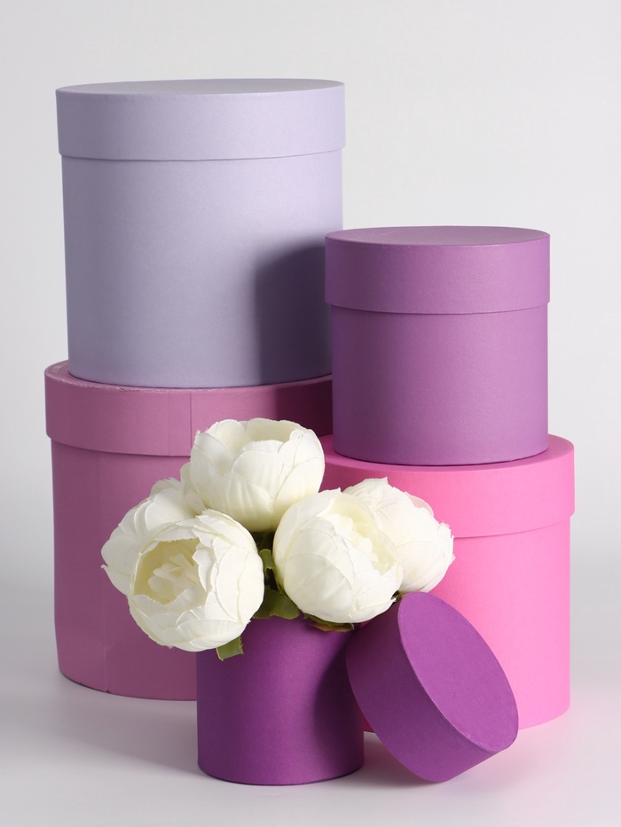 УЦЕНКА Набор круглых коробок 5 в 1 «Лаванда» 20×20×20 - 11×11×11 см