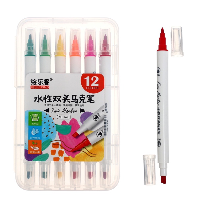 УЦЕНКА Набор маркеров 12 цветов, двусторонние, пулевидный и скошенный наконечники