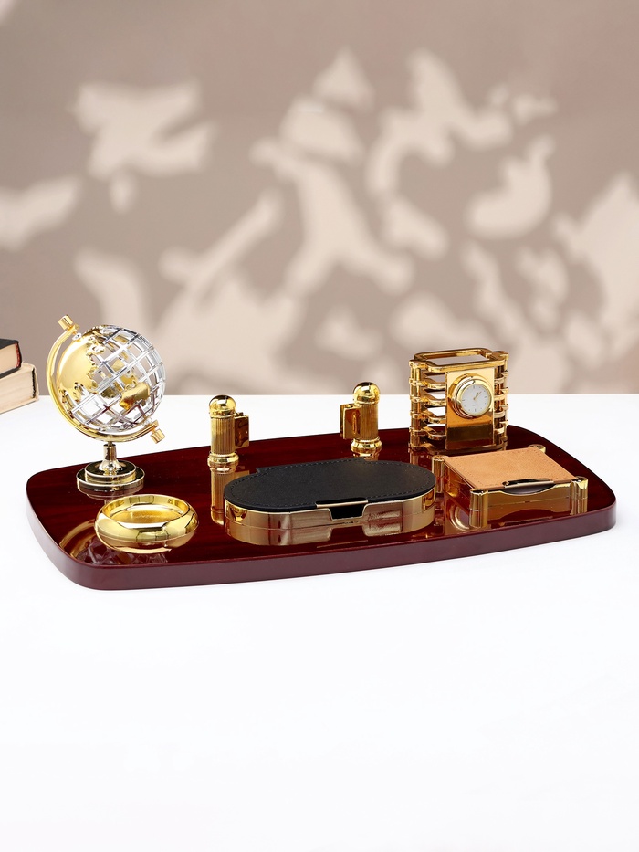 Компактный настольный набор поможет избежать хаоса на рабочем месте. Храните в нём канцелярские принадлежности или другие мелочи, чтобы правильно организовать пространство. К тому же изделие имеет минималистичный дизайн и выполнено под дерево, поэтому оно украсит собой любое место как декоративный элемент.