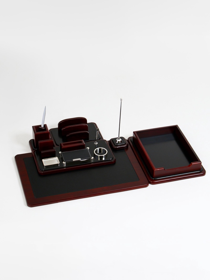 Компактный настольный набор поможет избежать хаоса на рабочем месте. Храните в нём канцелярские принадлежности или другие мелочи, чтобы правильно организовать пространство. К тому же изделие имеет минималистичный дизайн и выполнено под дерево, поэтому оно украсит собой любое место как декоративный элемент.