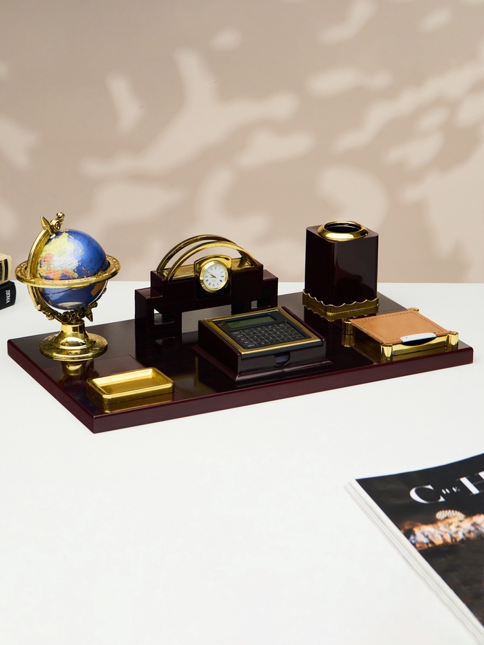УЦЕНКА Набор настольный 7в1 (блок для бумаги, подставка для печати, карандашница, калькулятор, глобус, визитница с часами)