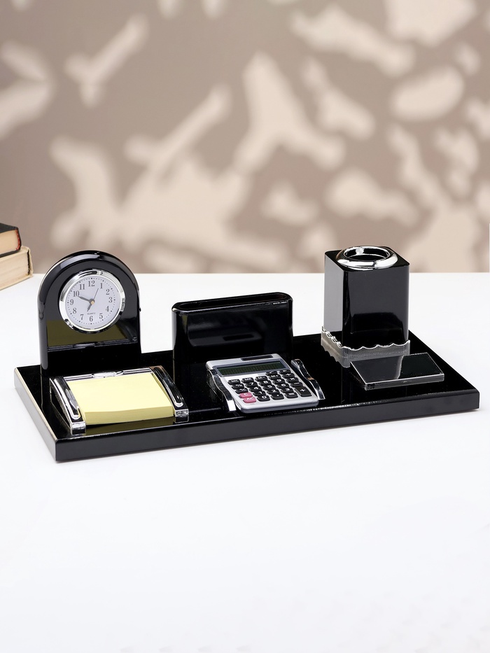 Компактный настольный набор поможет избежать хаоса на рабочем месте. Храните в нём канцелярские принадлежности или другие мелочи, чтобы правильно организовать пространство. К тому же изделие имеет минималистичный дизайн и выполнено под дерево, поэтому оно украсит собой любое место как декоративный элемент.