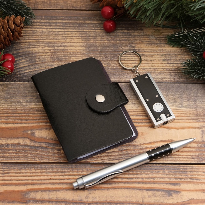 Составляющие набораБрелок, Визитница, Ручка, Фонарик