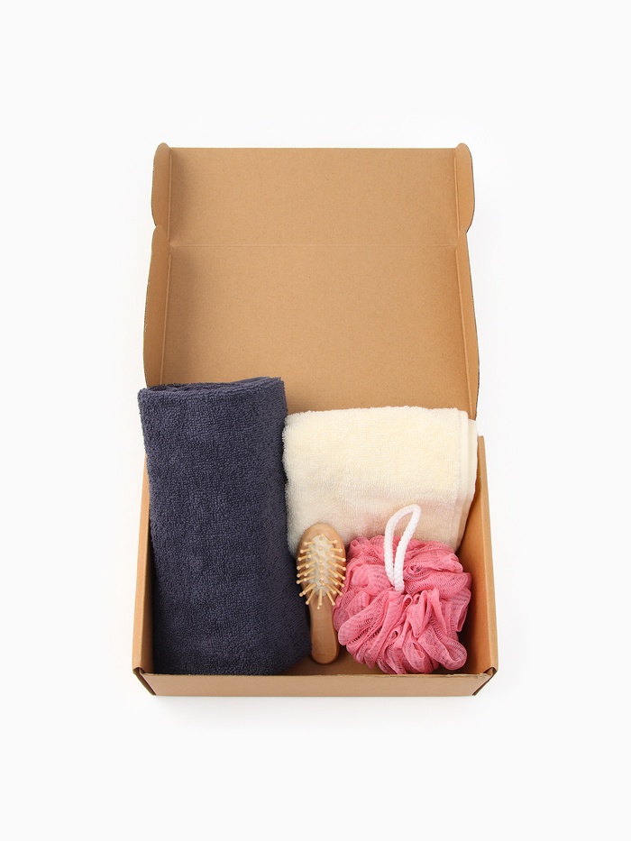 Комплектация2 полотенца, Мочалка, Щётка