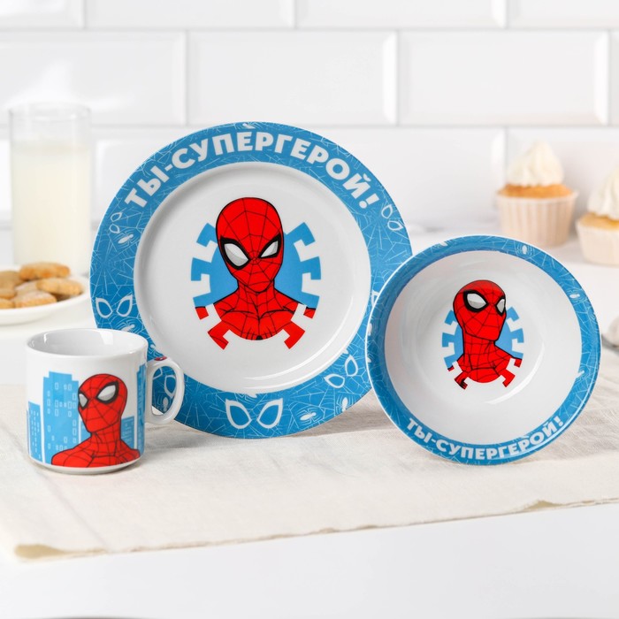 УЦЕНКА Набор посуды, 3 предмета: тарелка Ø 18 см, миска Ø 15 см, кружка 250 мл, «Ты - супергерой», Человек-паук