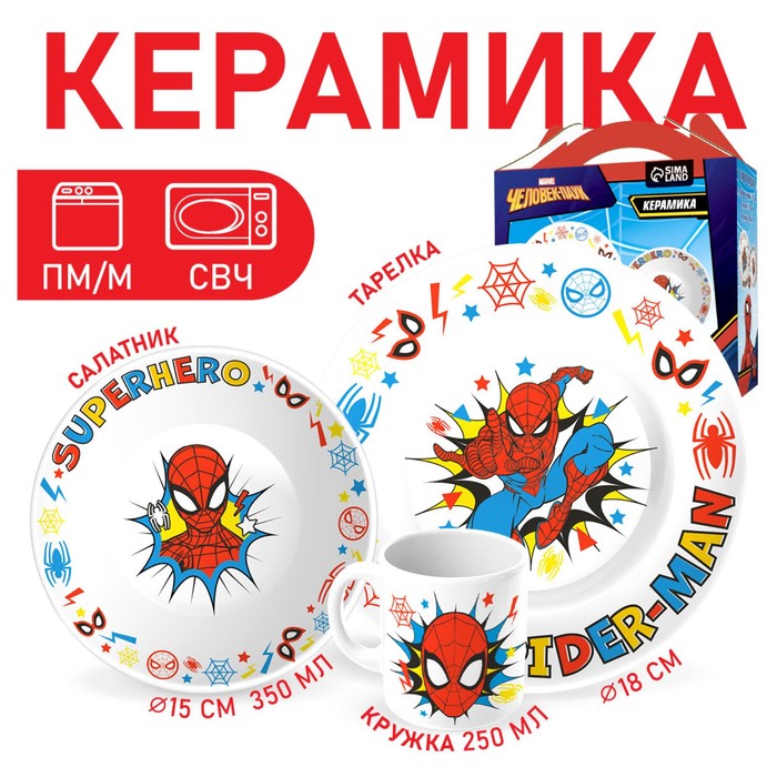УЦЕНКА Набор посуды «Человек-паук», кружка 250 мл, тарелка 18 см, салатник