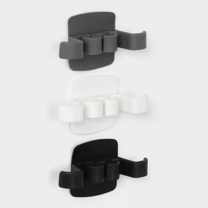Этот набор состоит из 3 держателей разных цветов: белого, черного и серого. Они легко крепятся к любой поверхности с помощью самоклеящейся поверхности и не требуют дополнительных инструментов.