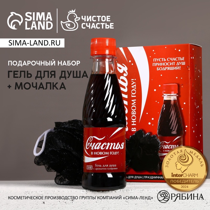 УЦЕНКА Набор «Счастья в Новом году!», гель для душа, 250 мл, аромат газировки и мочалка