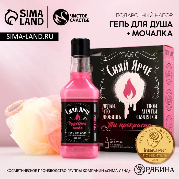УЦЕНКА Набор «Сияй ярче!», гель для душа во флаконе виски, 250 мл и мочалка для тела