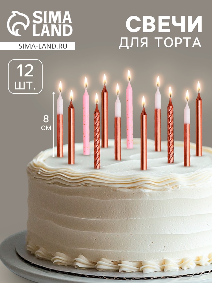 УЦЕНКА Набор свечей для торта "Розовая вечеринка", 12 шт, 8 см, белый и розовый металлик