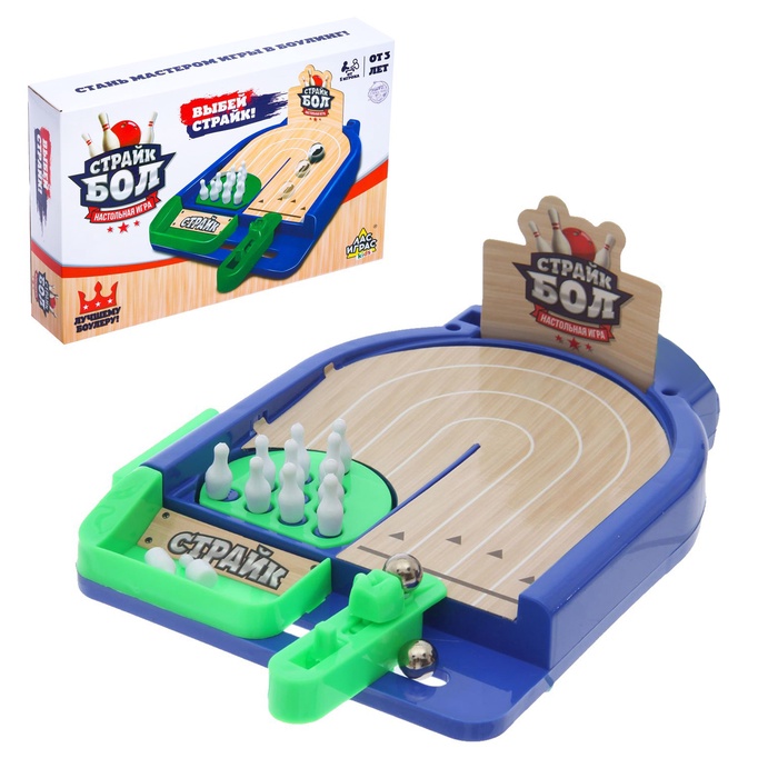На игровом поле установлено 12 кеглей. Ваша задача — сбить как можно больше за несколько заранее установленных попыток. Чтобы запустить шарик, используйте специальный рычаг.