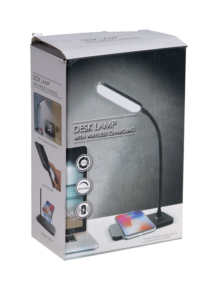 )Настольная лампа с беспроводной зарядкой и мощностью 15 Вт создаёт комфортное освещение и позволяет заряжать совместимые устройства без проводов.