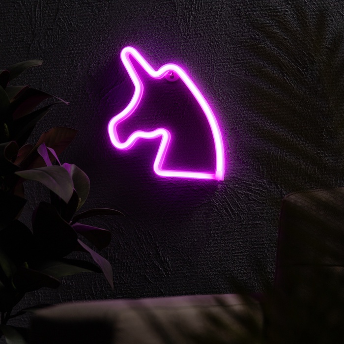 УЦЕНКА Неоновая вывеска «Единорог» 22×19 см, от батареек AAx3 + USB, свечение розовое