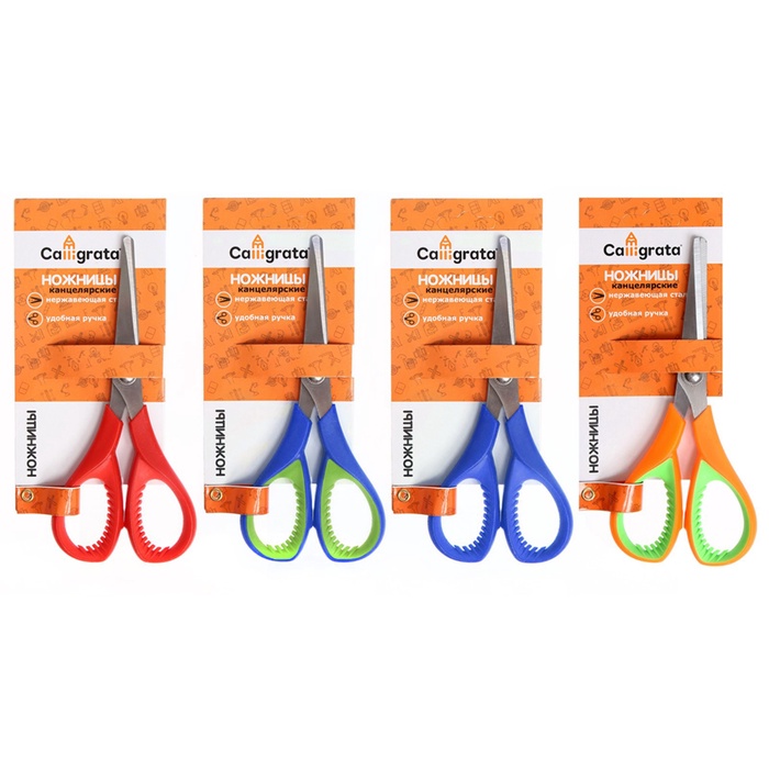 УЦЕНКА Ножницы канцелярские 15 см (±0.5 см), ручки пластиковые с резиновыми вставками МИКС